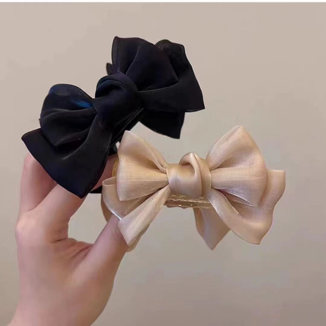 Elegant Bow Bun Head Clip Net Red 2023 New Temperament Hairpin Female Back Head Clip Headwear