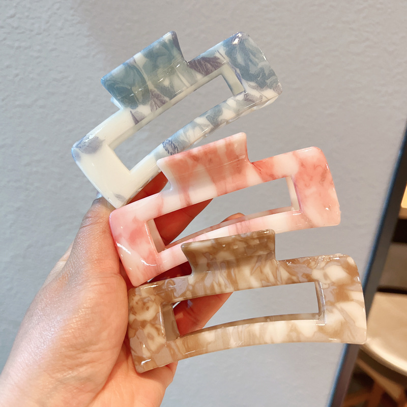 Korean Watermarked Ink Square Hairpin Large Back Head Clip Temperament Female Hairpin Shark Clip Headpiece Hair Clip