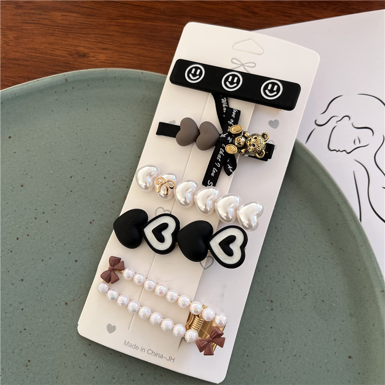 New Maillard Hairpin Sweet Temperament Love Smiling Face Hairpin Set Temperament Rhine-Diamond Hairpin Clip Headwear Woman