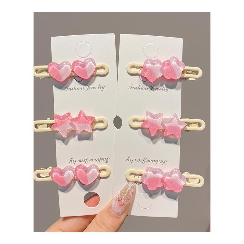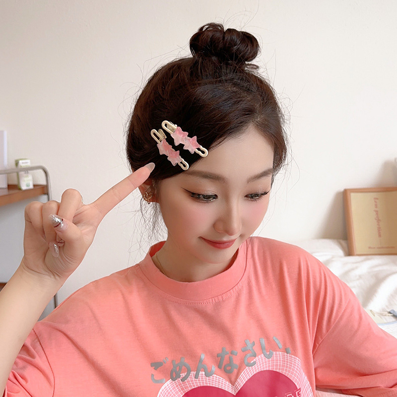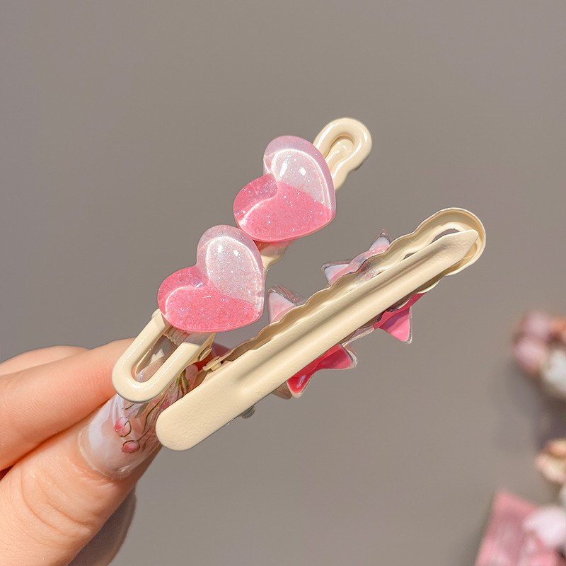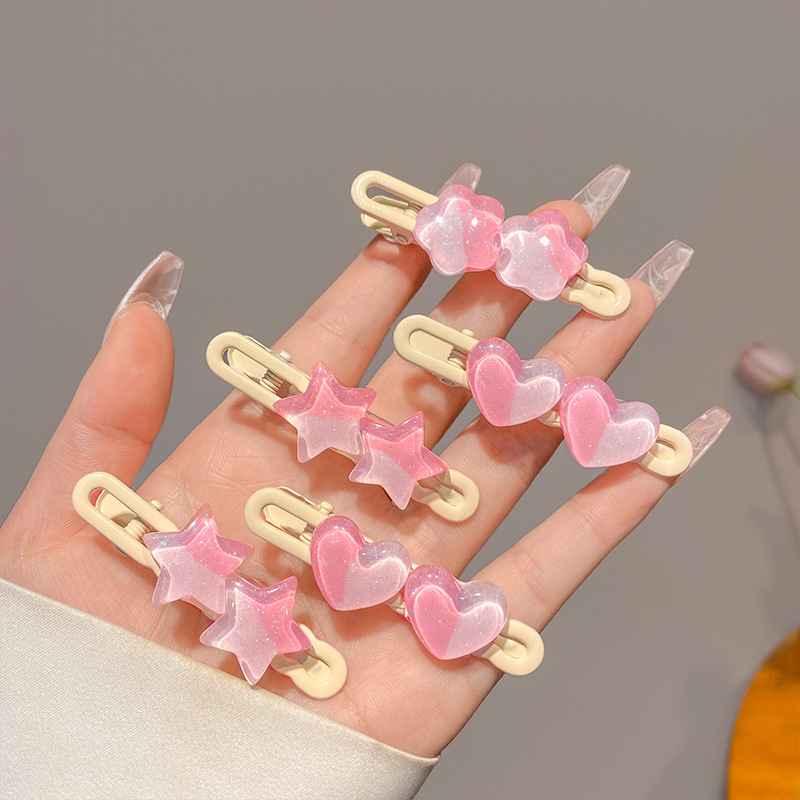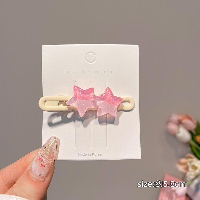 Sweet Girly Pink Star Hairpin Forehead Side Bangs With Cute Hairpin Children's Shredded Hair Duckbill Hairpin Headpiece